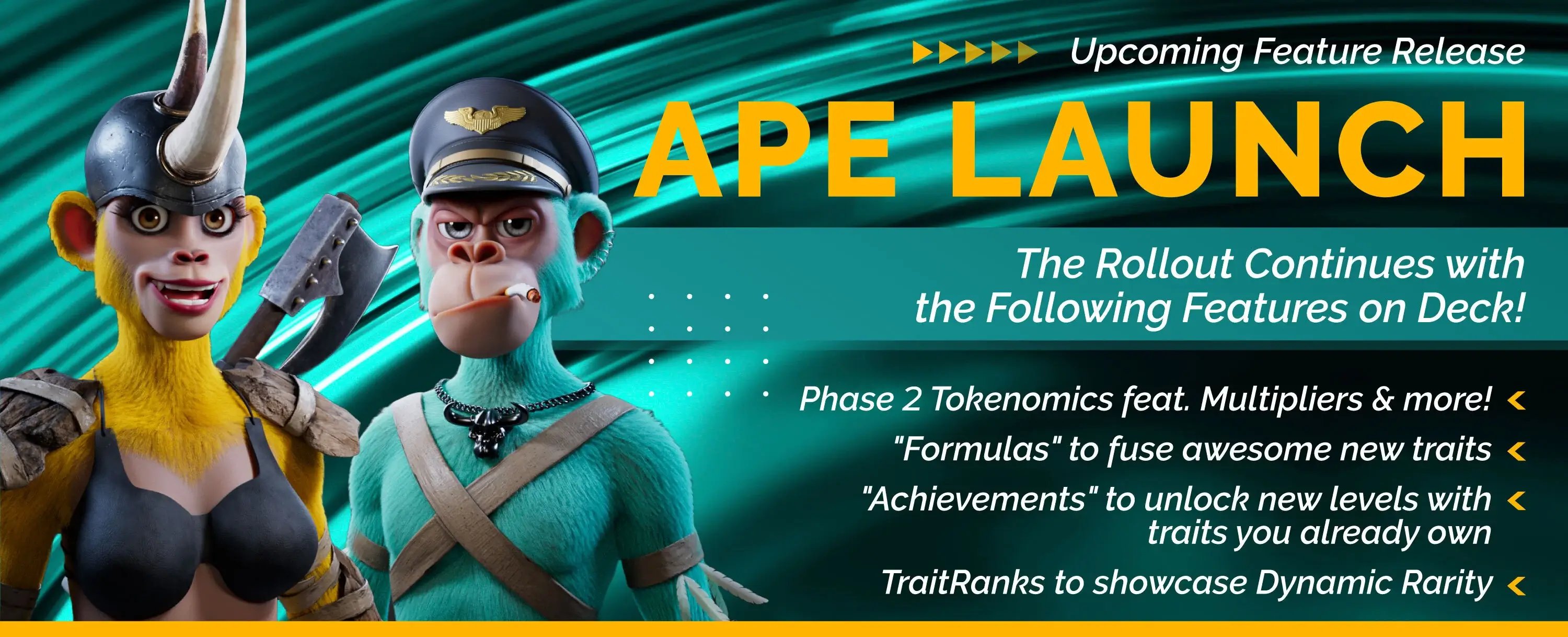 Customizable traits for your Ape PFP. Each an individual NFT (1155 ERC token) that can be added and removed from your Ape, stored in your wardrobe, sold, traded, and more.